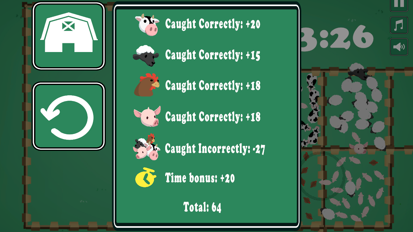 You'll get +1 Point for each animal in the correct pen, plus a bonus for remaining time on the clock.